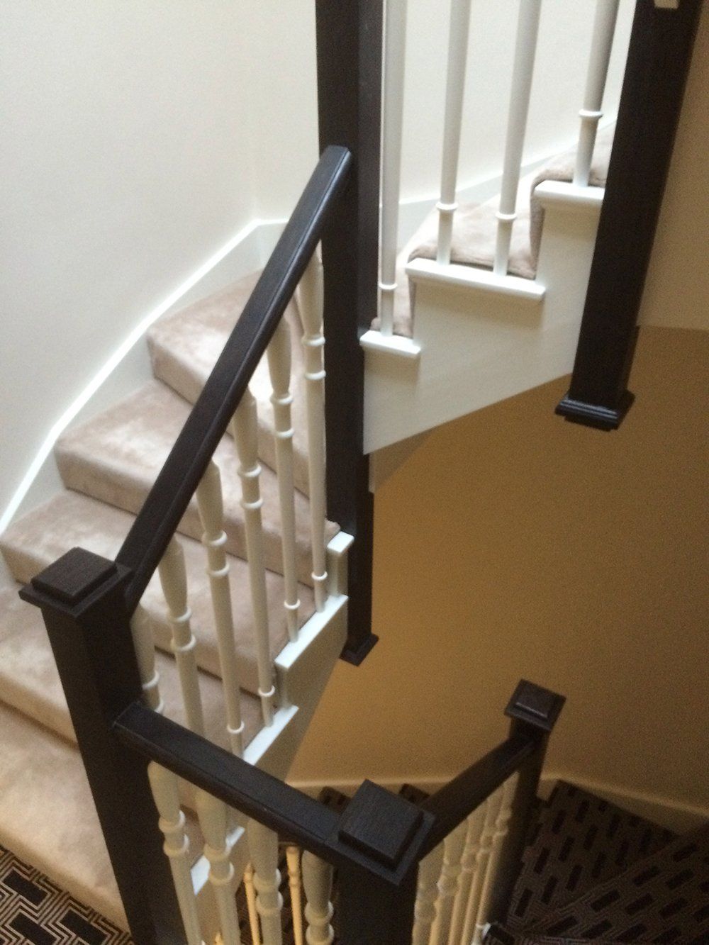 A complete stair clad can be achieved over an existing painted material to achieve the illusion of a solid grained staircase and newel posts can be changed where possible and veneered at structural points where they have to stay.